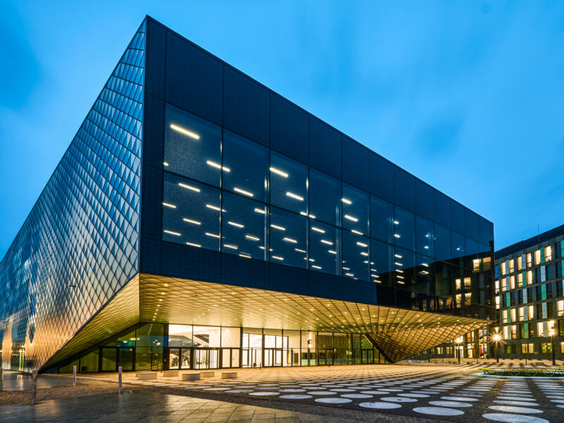 OBO's cable support systems were installed in the open ceilings not only because of their functionality, but also because of their excellent fire protection properties. The cable trays produced by OBO Bettermann make an important aesthetic and technical contribution to this extraordinary, cutting-edge building, particularly in the context of the conceptual contrast of the interior between the emphasis on wood, as a material, and the rough simplicity of the contemporary industrial appeal.