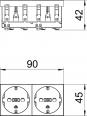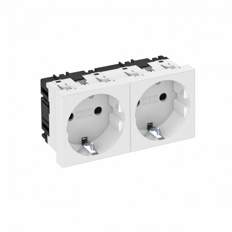 Power socket, double 0°, with increased touch protection with screwless terminals, 2-pin, 16 A, 250 V~, with connection terminals to IEC 60884-1.