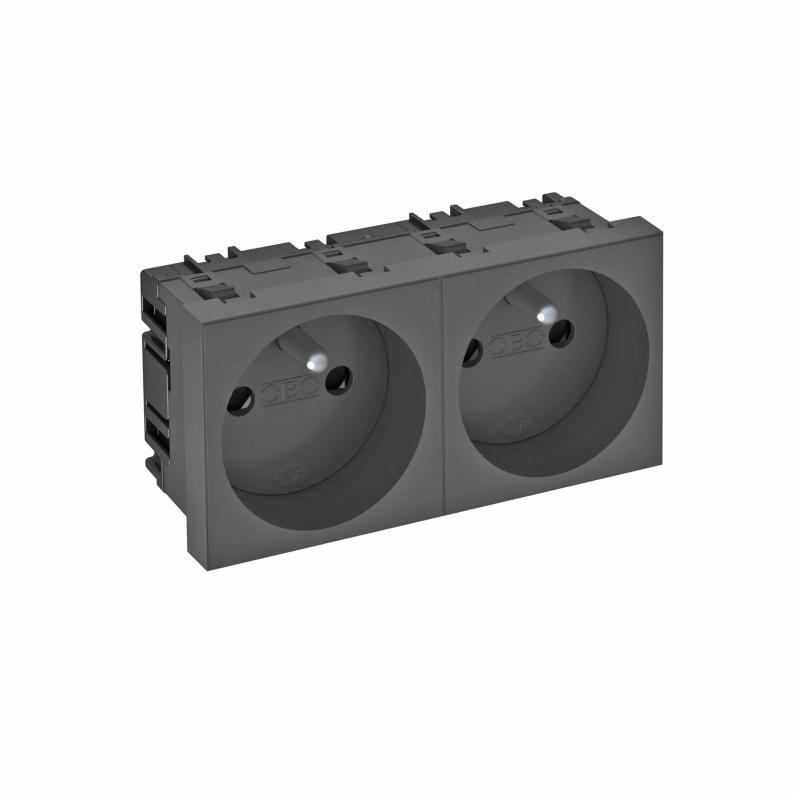 Socket with earthing pin, double 0°, with increased touch protection, with screwless terminals, 2-pin, 16 A, 250 V~, with connection terminals to IEC 60884-1.