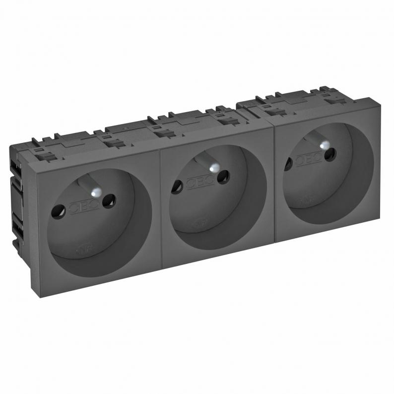 Socket with earthing pin, triple 0°, with increased touch protection, with screwless terminals, 2-pin, 16 A, 250 V~, with connection terminals to IEC 60884-1.