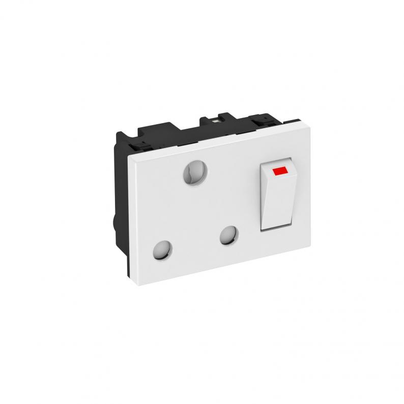 Socket, single 0°, with switch, South Africa/India, conforming to BS 546, with increased touch protection, with screw terminals, 2-pin, 16 A, 250 V~.