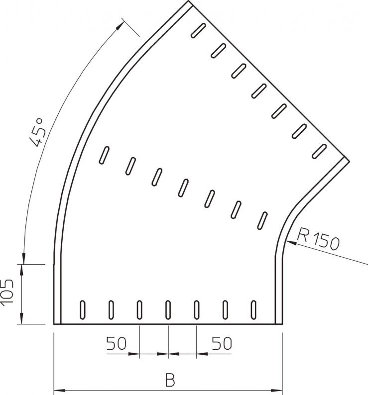 45° bend, horizontal, for all cable tray types of 110 mm side height.