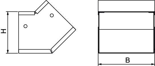 45° internal bend with cover, for use on single-compartment cable ducts.