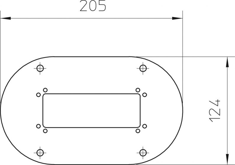 Floor plate with 30 mm visible edge and four fastening holes Ø 8.5 mm. The floor plate is suitable for mounting service poles of type ISST70140, ISSOG70140 and ISST70140B.