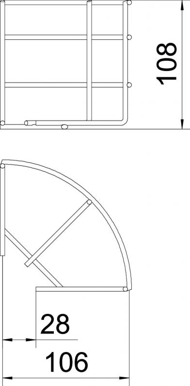 90° bend, horizontal, for all mesh cable trays of 105 mm side height.