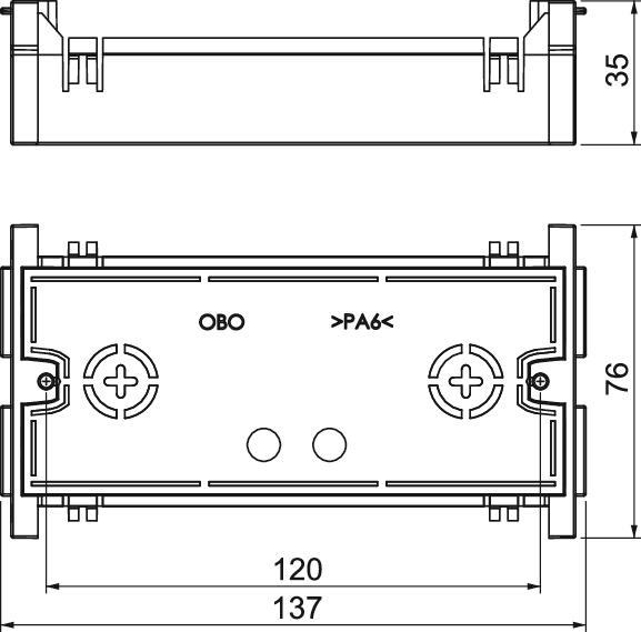Front-locking, double device installation socket for British Standard switch systems. Insertion opening for cable diameters of max. 17 mm. Can be used in all device installation trunking of the Rapid 80 series and ISS service poles with 76.5 mm system opening.