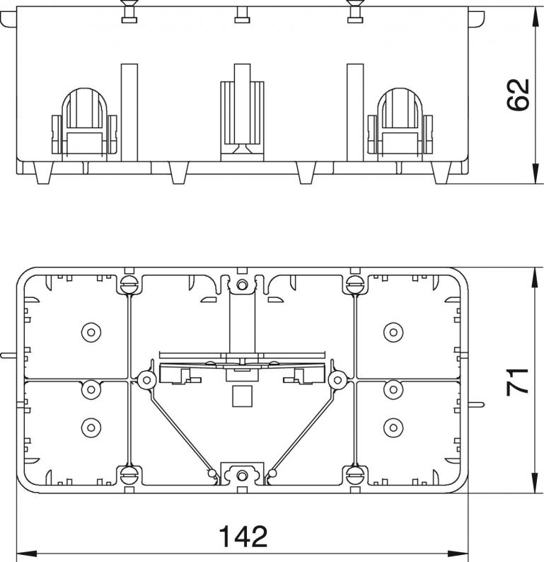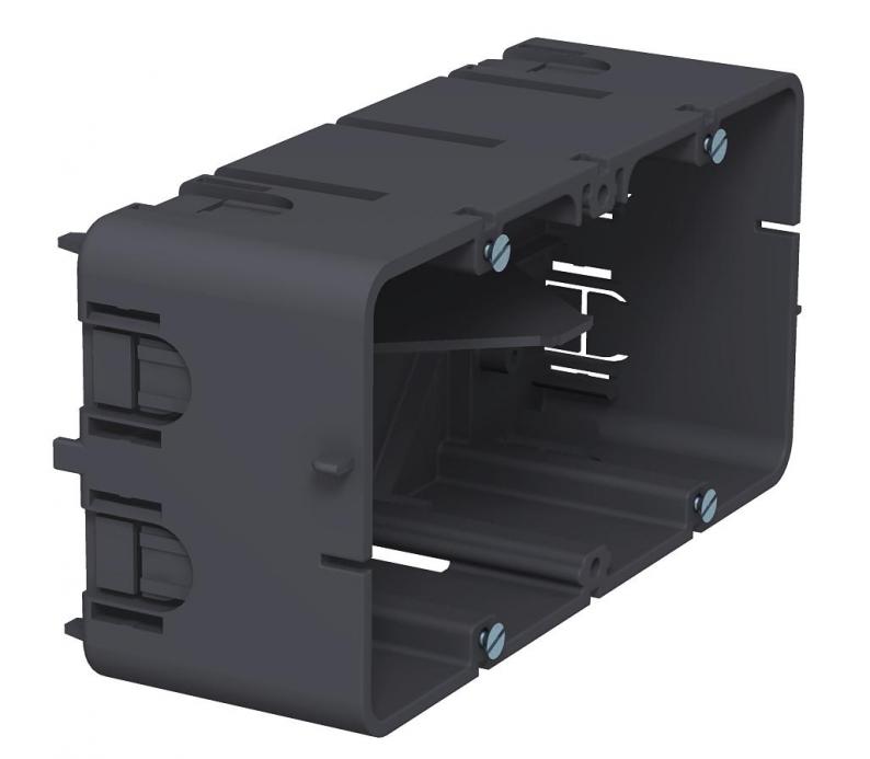 Double accessory mounting box for the installation of two installation devices (central insert and frame) in device installation trunking and service poles with 110 mm system opening.
