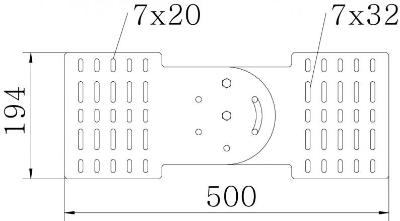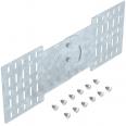 Adjustable connector for vertically rounded connections of cable trays (FT) with a side height of 200 mm.
