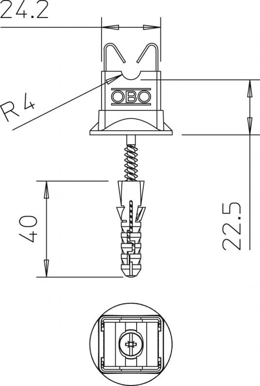 Cable bracket for Rd 8 mm, fastening with screw and anchor