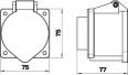 CEE socket with 60 mm fastening track, 3-pin + N + PE, 400 V, 32 A, 6 h.