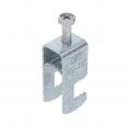 Clamp clip with F-foot, metal pressure sleeve with rounded edges to protect the cable. For vertical and horizontal mounting of 1 single cable on flat bars. With 1-start screw thread on pressure sleeve, universal hexagonal screw head WAF10, with slot and cross recess. Suitable for assembly indoors and outdoors. We recommend the use of a counter-sleeve.