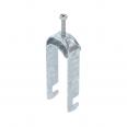 Clamp clip with F-foot, metal pressure sleeve with rounded edges to protect the cable. For vertical and horizontal mounting of 2 single cables on flat bars. With 1-start screw thread on pressure sleeve, universal hexagonal screw head WAF10, with slot and cross recess. Suitable for assembly indoors and outdoors. Multiple cables should be separated by double sleeves. We recommend the use of a counter-sleeve.