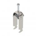 Clamp clip with hammerhead foot, plastic pressure sleeve made of polypropylene. For vertical and horizontal mounting of 2 single cables on a C-profile rail. For a slot width 16–17 mm. With 1-start screw thread on pressure sleeve, universal hexagonal screw head WAF10, with slot and cross recess. Suitable for assembly indoors and outdoors. Multiple cables should be separated by double sleeves. We recommend the use of a counter-sleeve.