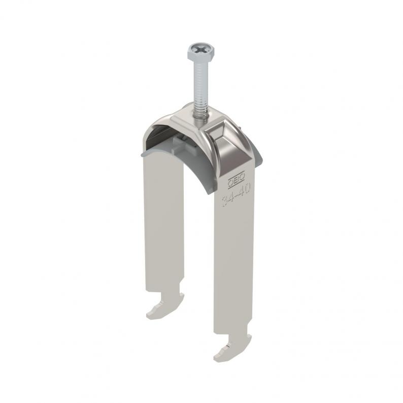 Clamp clip with hammerhead foot, plastic pressure sleeve made of polypropylene. For vertical and horizontal mounting of 2 single cables on a C-profile rail. For a slot width 16–17 mm. With 1-start screw thread on pressure sleeve, universal hexagonal screw head WAF10, with slot and cross recess. Suitable for assembly indoors and outdoors. Multiple cables should be separated by double sleeves. We recommend the use of a counter-sleeve.