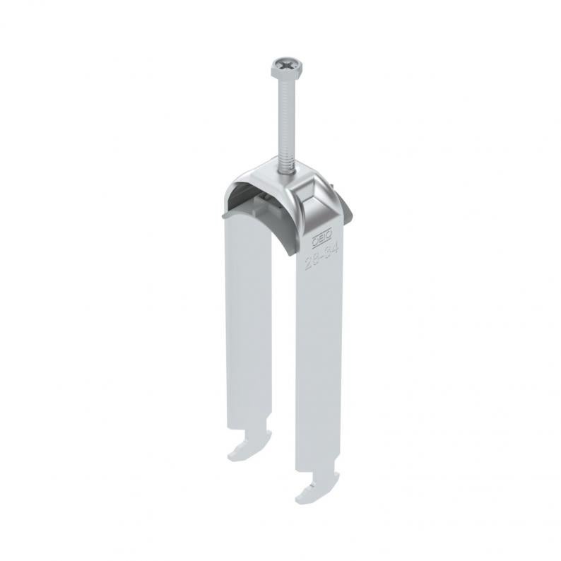 Clamp clip with hammerhead foot, plastic pressure sleeve made of polypropylene. For vertical and horizontal mounting of 3 single cables on a C-profile rail. For a slot width 16–17 mm. With 1-start screw thread on pressure sleeve, universal hexagonal screw head WAF10, with slot and cross recess. Suitable for assembly indoors and outdoors. Multiple cables should be separated by double sleeves. We recommend the use of a counter-sleeve.