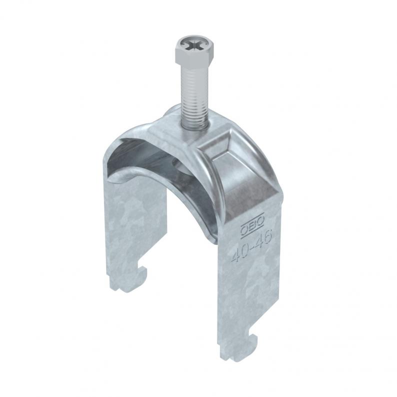 Clamp clip with N-foot, metal pressure sleeve with rounded edges to protect the cable. For vertical and horizontal mounting of 1 single cable on a C-profile rail. For slot width 11‒12 mm With 1-start screw thread on pressure sleeve, universal hexagonal screw head WAF10, with slot and cross recess. Suitable for assembly indoors and outdoors. We recommend the use of a counter-sleeve.