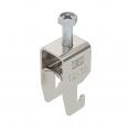Clamp clip with U-foot, metal pressure sleeve with rounded edges to protect the cable. For vertical and horizontal mounting of 1 single cable on a C-profile rail. For slot width 18–22 mm. With 1-start screw thread on pressure sleeve, universal hexagonal screw head WAF10, with slot and cross recess. Suitable for assembly indoors and outdoors. We recommend the use of a counter-sleeve.
