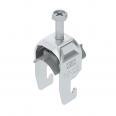Clamp clip with U-foot, plastic pressure sleeve made of polypropylene. For vertical and horizontal mounting of 1 single cable on a C-profile rail. For slot width 18–22 mm. With 1-start screw thread on pressure sleeve, universal hexagonal screw head WAF10, with slot and cross recess. Suitable for assembly indoors and outdoors. We recommend the use of a counter-sleeve.