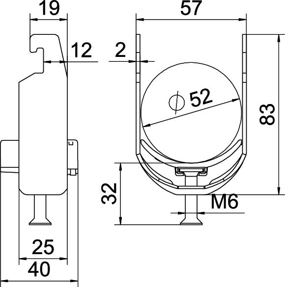 Clamp clip with U-foot, plastic pressure sleeve made of polypropylene. For vertical and horizontal mounting of 1 single cable on a C-profile rail. For slot width 18–22 mm. With 1-start screw thread on pressure sleeve, universal hexagonal screw head WAF10, with slot and cross recess. Suitable for assembly indoors and outdoors. We recommend the use of a counter-sleeve.