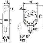 Clamp clip with U-foot, plastic pressure sleeve made of polypropylene. For vertical and horizontal mounting of 1 single cable on a C-profile rail. For slot width 18–22 mm. With 1-start screw thread on pressure sleeve, universal hexagonal screw head WAF10, with slot and cross recess. Suitable for assembly indoors and outdoors. We recommend the use of a counter-sleeve.