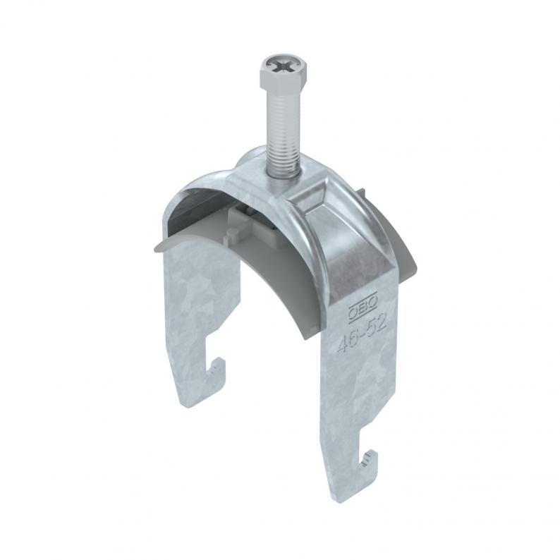 Clamp clip with U-foot, plastic pressure sleeve made of polypropylene. For vertical and horizontal mounting of 1 single cable on a C-profile rail. For slot width 18–22 mm. With 1-start screw thread on pressure sleeve, universal hexagonal screw head WAF10, with slot and cross recess. Suitable for assembly indoors and outdoors. We recommend the use of a counter-sleeve.
