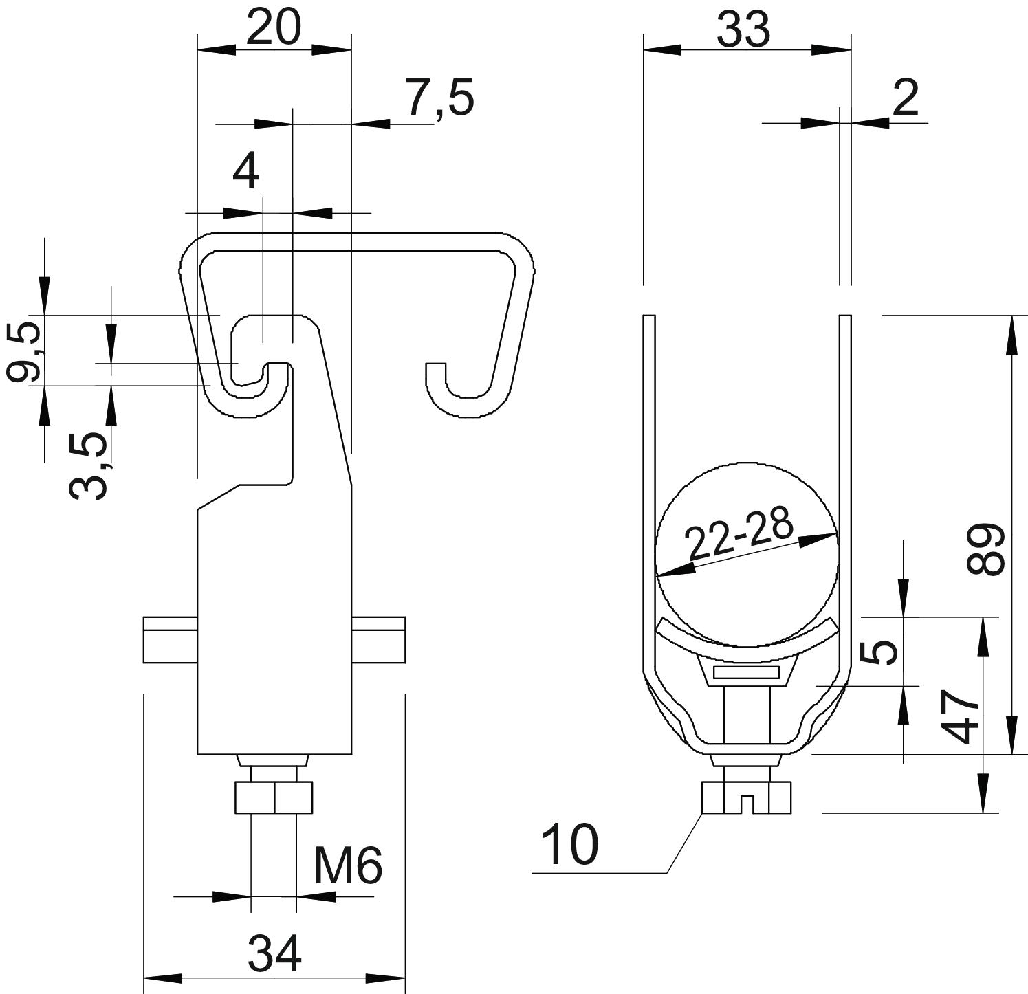 | Clamping range D, min. | 22 mm |