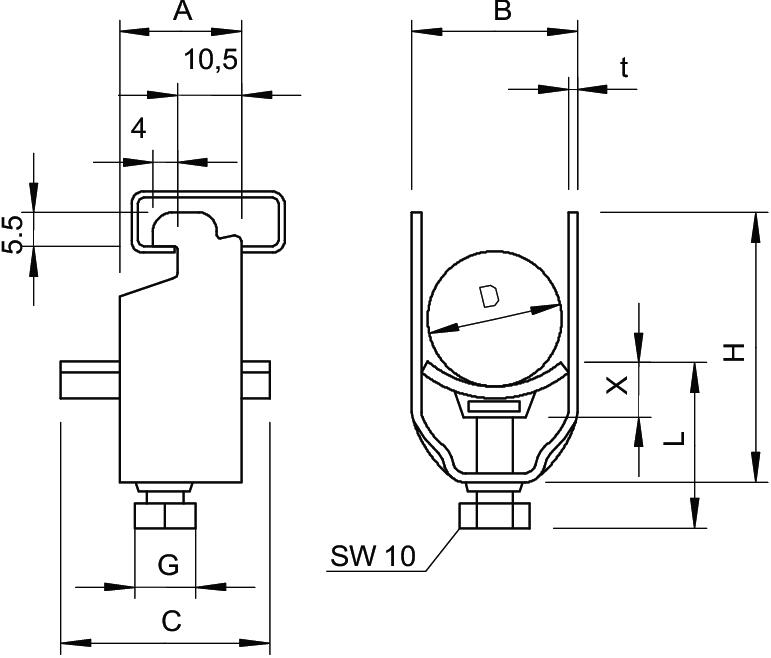Clamp clip, single, metal pressure trough