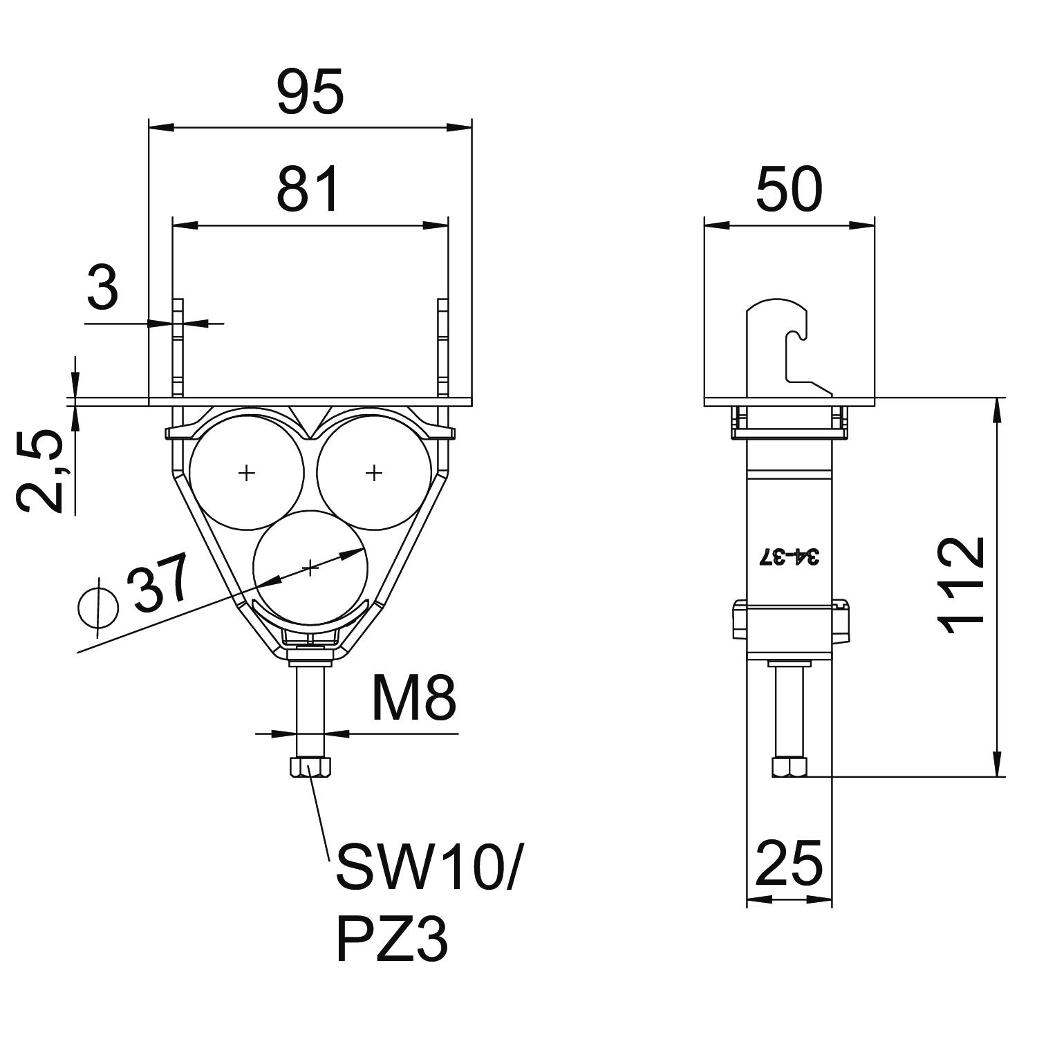 The clamp clips 2056/U-E are used for systematic routing of single-wire cables in rotary current networks. As, with this routing type, the magnetic fields counteract each other, no heating is to be feared and steel clips can be used.