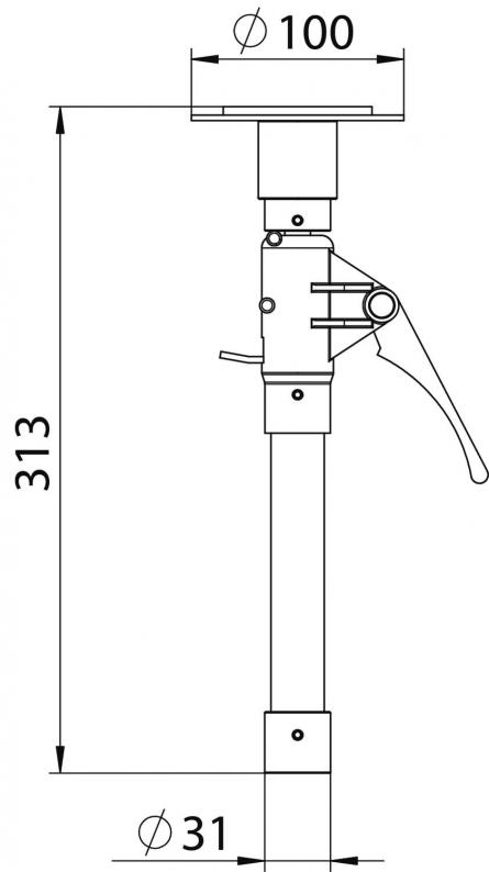Clamping device for tensioning the floor-ceiling service poles against the ceiling. The area for height adjustment lies between 313 mm (basis length) and 480 mm.