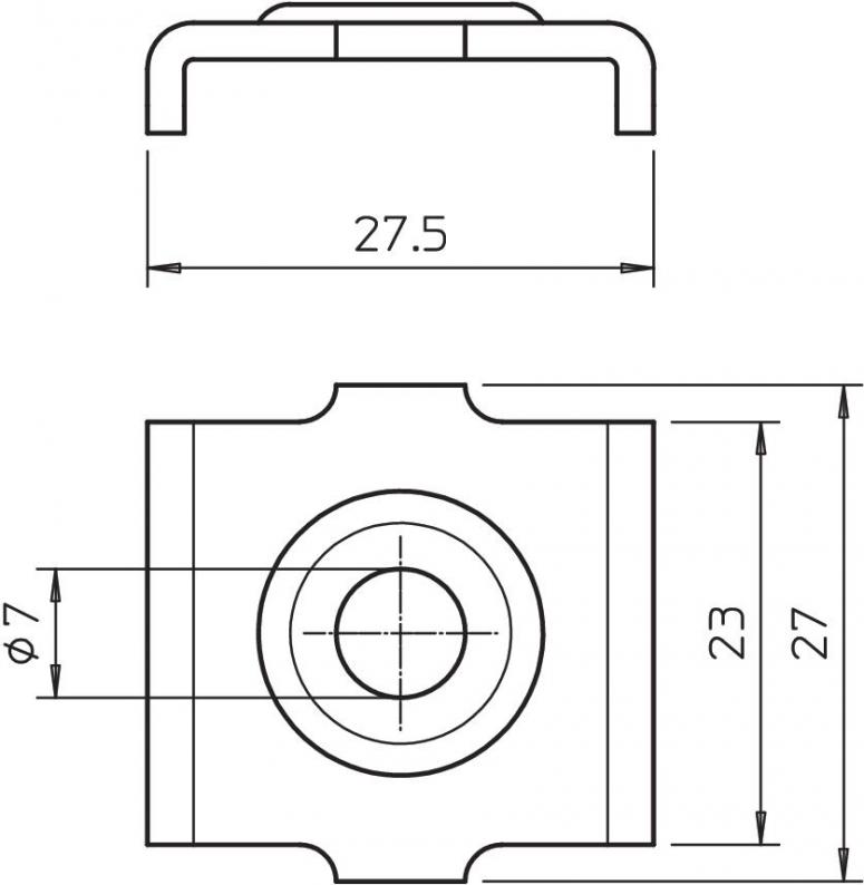 Clamp for fastening mesh cable trays of width 50 mm to the floor.