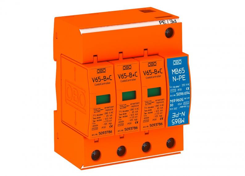 • Lightning current arresting capacity 12.5 kA (10/350) per pole and 65 kA (8/20) in total