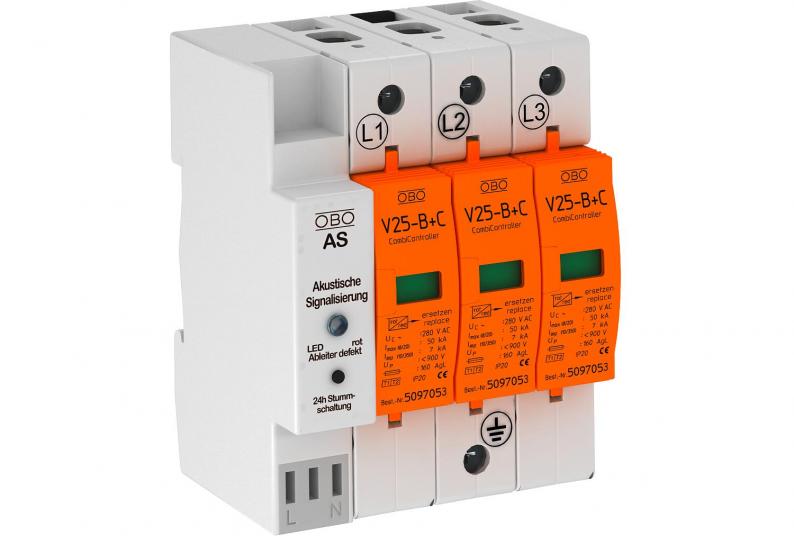 Combination arrester V25 3-pole 280 V with acoustic signalling