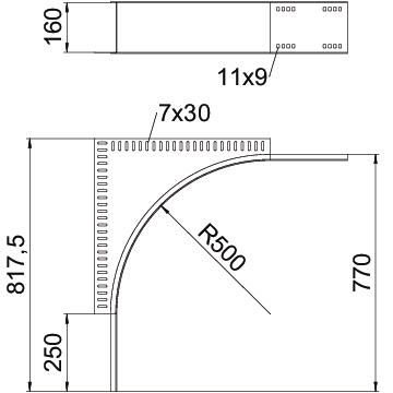 Corner extension piece for wide span cable trays and ladders with a side height of 160 mm. Including fastening material.