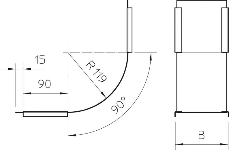 Cover for 90° vertical bend, rising, A4
