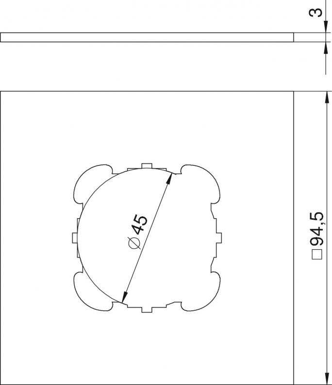 Cover plate with opening Ø 45 mm for the installation of a device with concealed support ring or support clamp.