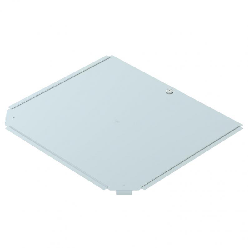 Cover for T piece fitting for lockable and screw-on cable trays in indoor and outdoor areas, to protect cables against damage and soiling. Fastening with pre-mounted sash lock and through attachment of the section cover. Suitable for all side heights.