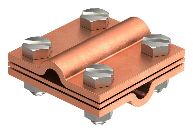 Cross-connector with intermediate plate for Rd 8−10 mm Cu