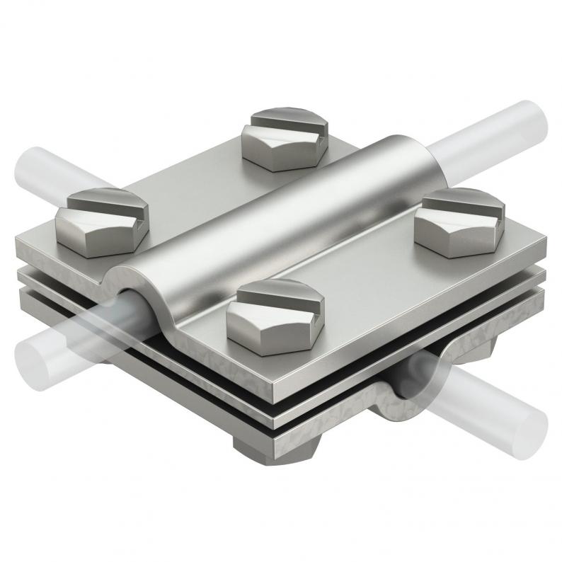 Cross-connector with intermediate plate for Rd 8−10 mm, wide version A4