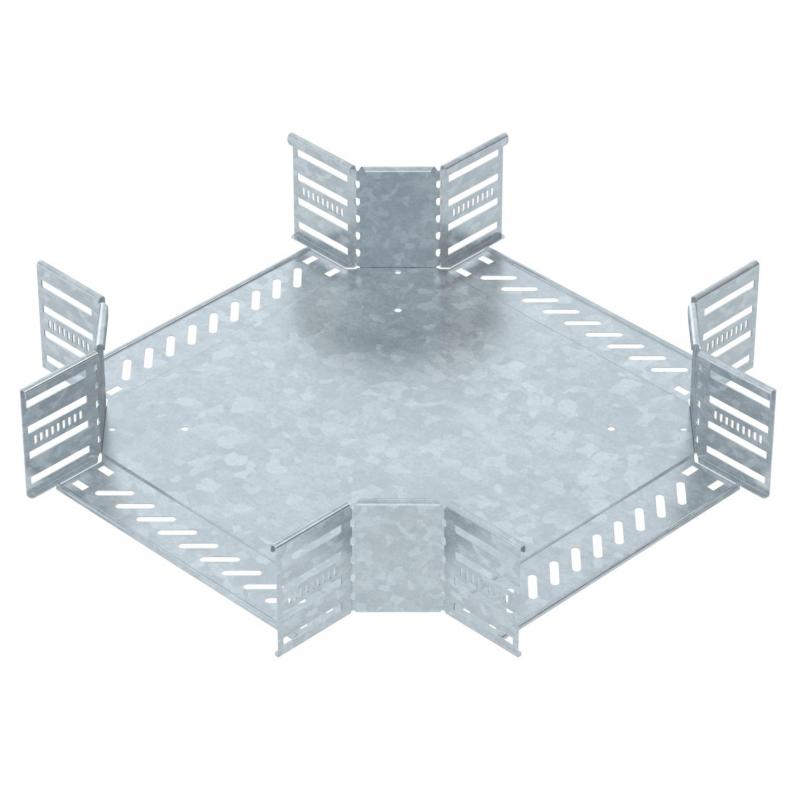 Cross-over for the creation of a horizontal branch, fitting for lock and screw-on cable trays of side height 110 mm. Screwless mounting with double clamps or screw connection with FRS truss-head screws and M6 combination nuts. Can be used indoors and outdoors. Fastening material must be ordered separately.