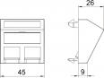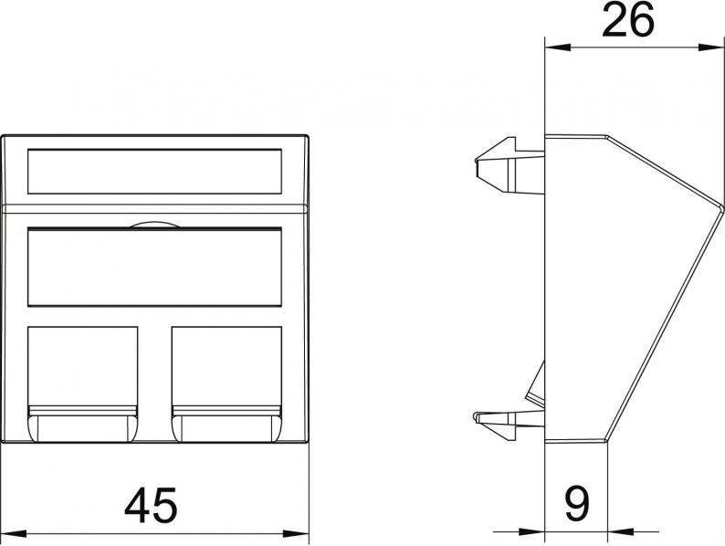 Data technology support with slanting outlet and locking slider to accept two data technology connection modules with RJ45 socket. The locking fastening is suitable for horizontal and vertical installation in the system environment. Type EP has a special module seat and is designed for indirect fastening of the data connection modules in the mounting opening.