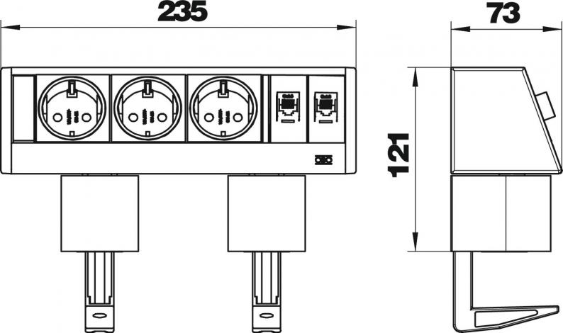 Deskbox DB, with fastening clamp, 3 sockets, 2x RJ45 Cat. 6