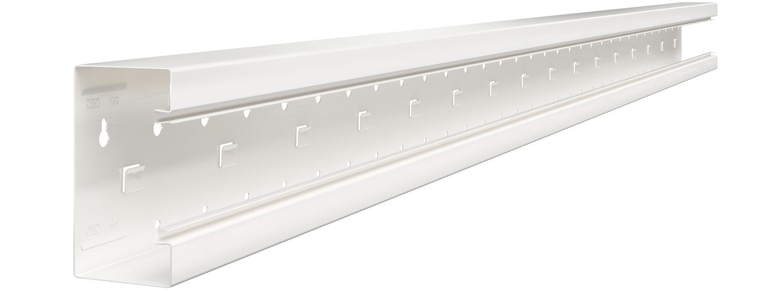 Over-lengths of up to 3,000 mm for trunking bases and covers as well as other RAL colours can be provided on request. The visible surfaces of the painted device installation trunking are laminated.