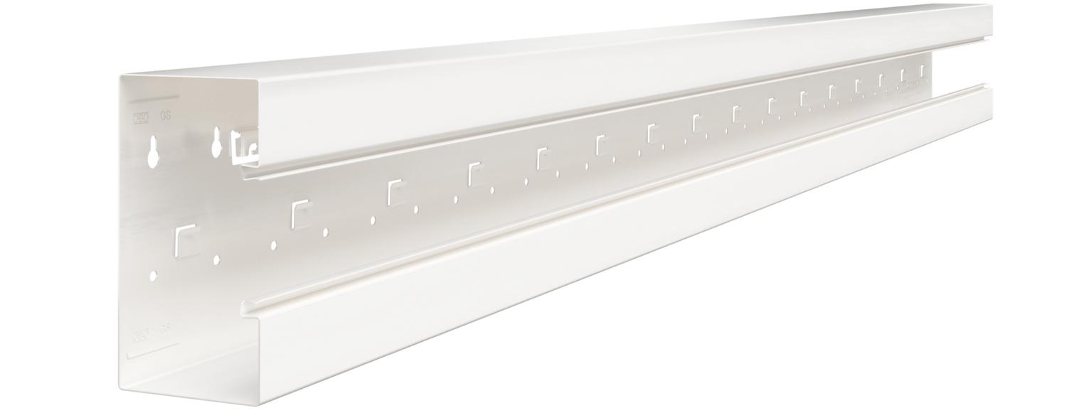 Over-lengths of up to 3,000 mm for trunking bases and covers as well as other RAL colours can be provided on request. The visible surfaces of the painted device installation trunking are laminated.