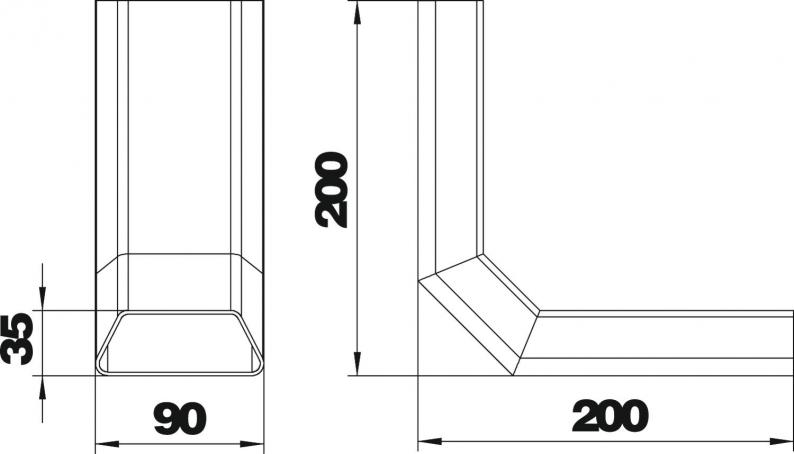 Vertical bend, 90°, suitable for duct size 90x35.