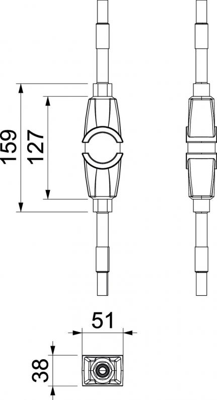 • NYY-0 1 x 25 mm2 cable, mounted on both sides