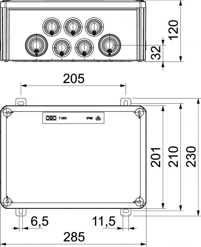 Connection box for data technology with soft plug-in seals. Pairs of high-temperature-resistant ceramic terminals, suitable for data cables. Green-yellow labelled protective conductor/shield terminal. Fastening on easily accessible external flaps. Approved for cable systems that maintain the electrical function according to DIN 4102 Part 12 with the classes E30, E60 and E90. Ceramic clamps have been tested according to DIN EN 60998-2-1:2004.