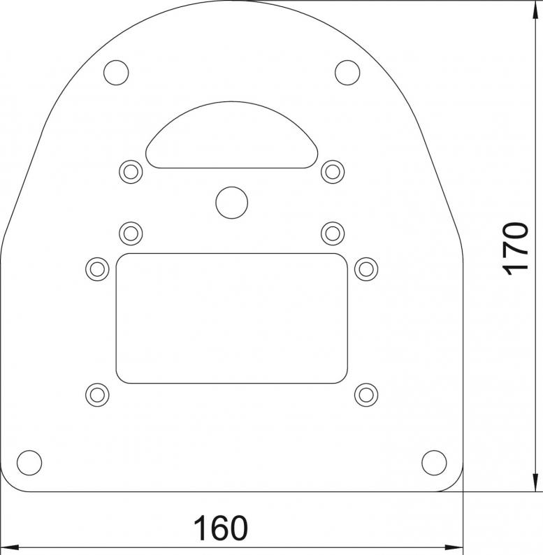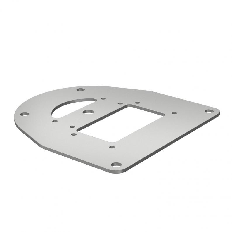 Floor plate to fasten the ISS110100R on the floor. The floor plate with visible edge has four fastening holes of Ø 8.5 mm.