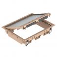 Service outlet with handle clamp for up to 9 individual Modul 45 devices in three UT3 universal supports, use in trunking systems and system floors for indoor use.