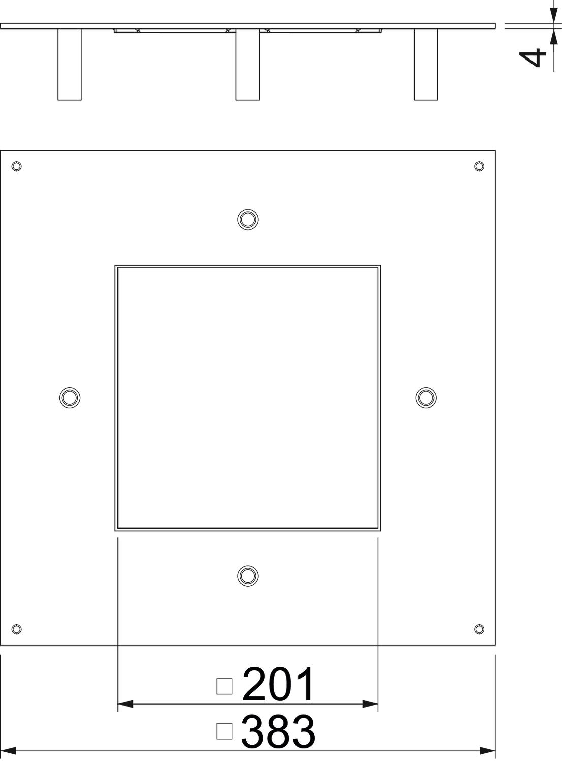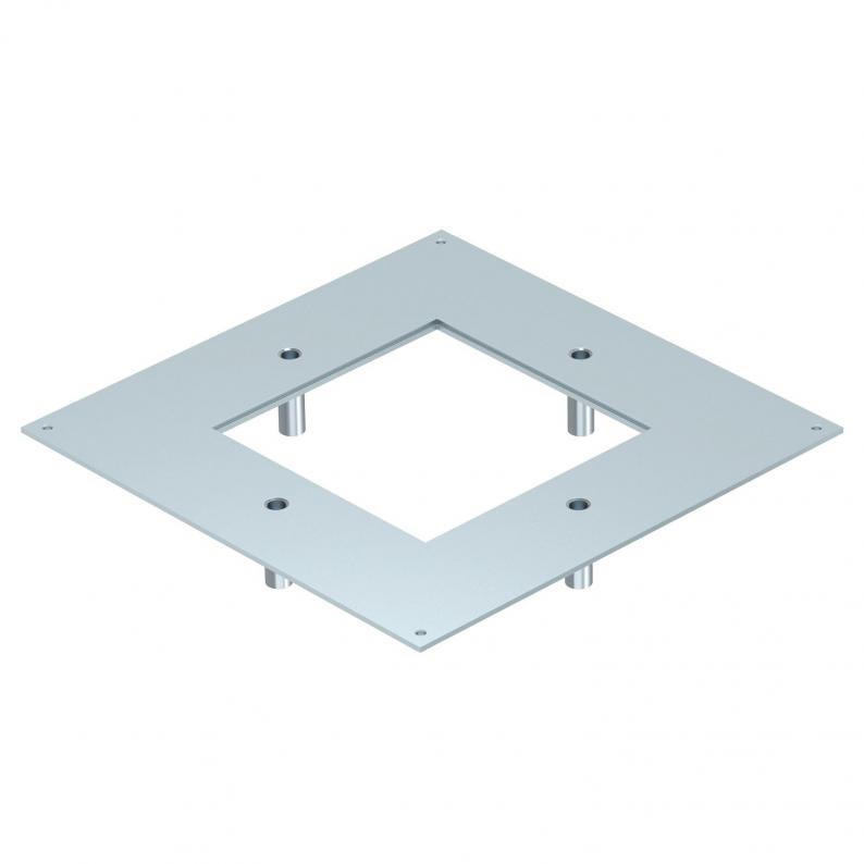 The heavy-duty mounting lid for the type UZD350 underfloor box is suitable for installation in a square heavy-duty cassette of nominal size 4. The installation opening is recessed by 3 mm and can be closed subsequently by a lid blanking plate.