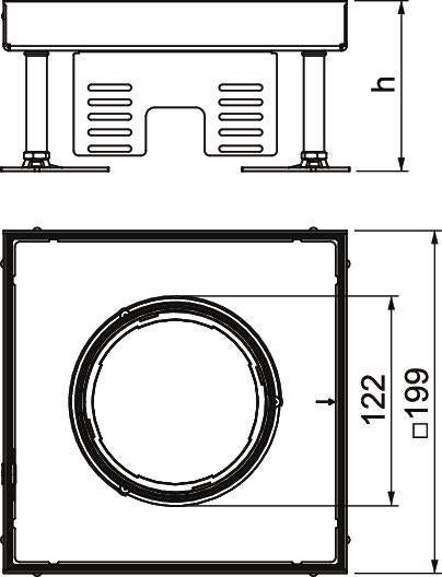 Height-adjustable cassette for tube bodies of nominal size 4 for the installation of devices in duct systems, raised and cavity floors in interior dry or wet-care floors. Protection class: IP X5.